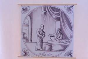 Auf den Bibelfliesen geht es um Josef, den seine Brüder für gutes Geld an eine Karawane verkaufen, die nach Ägypten zieht. Eine andere zeigt: Aus goldenen Ohrringen wurde am Fuß des Berges Sinai ein goldenes Kalb. In einer ganzen Reihe von Jesusgeschichten ist der Umgang mit Geld eine zentrale Frage.
